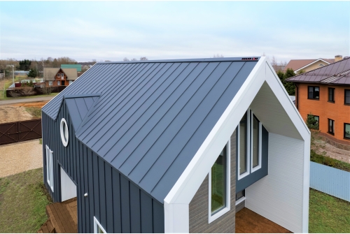 Фальц двoйной стоячий - актуальный, стильный и надежный кровельный материал, который отлично сочетается с различными архитектурными стилями. Благодаря классике линий этот материал понравится даже самым консервативным личностям.