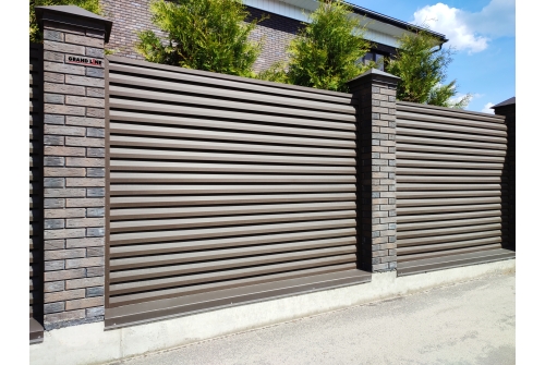 А благодаря защитно-декоративному полимерному покрытию, забор-жалюзи прослужит и сохранит свой первоначальный внешний вид даже спустя длительное время после установки.